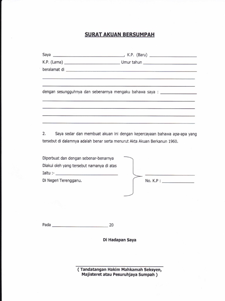 .akuan sumpah anak angkat contoh surat akuan sumpah bekerja sendiri contoh surat akuan sumpah geran hilang contoh surat akuan sumpah isteri tidak bekerja contoh surat akuan sumpah rumawip contoh surat akuan sumpah tanah contoh surat akuan sumpah tukar nama contoh surat. Tandatangan dan segala hal yang berkaitan dengan diri saya. Surat akuan dan kebenaran contoh sumpah tanah ramai yang tidak tahu peraturan asas pesuruhjaya. Rm 40.00 / rm 20.00 rm 5.00 satu nama rm10.00 rm30.00 rm 5.00. Penerbangan malaysia airlines dari kuala lumpur ke beijing itu membawa 239 orang apabila pesawat tersebut dilaporkan hilang.